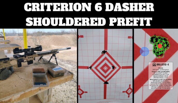 Max from Texas sent us some photos and info on his recent 6 Dasher build using a Criterion shouldered prefit purchased from Northland Shooters Supply. The results speak for themselves—consistent performance from the bench and solid groups while shooting positionally for PRS. Barrel specs: – 26” Criterion Shouldered Prefit – Bull Contour – 6 Dasher…